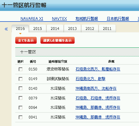 十一管区水路通報として代表的なものは、以下のとおりです。